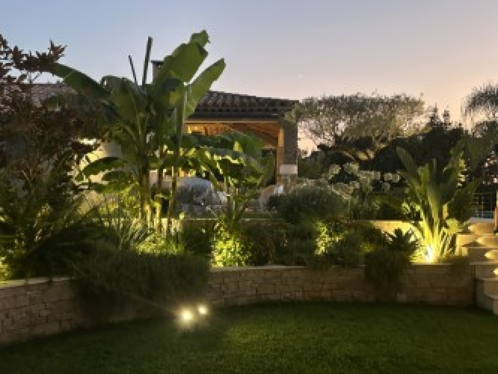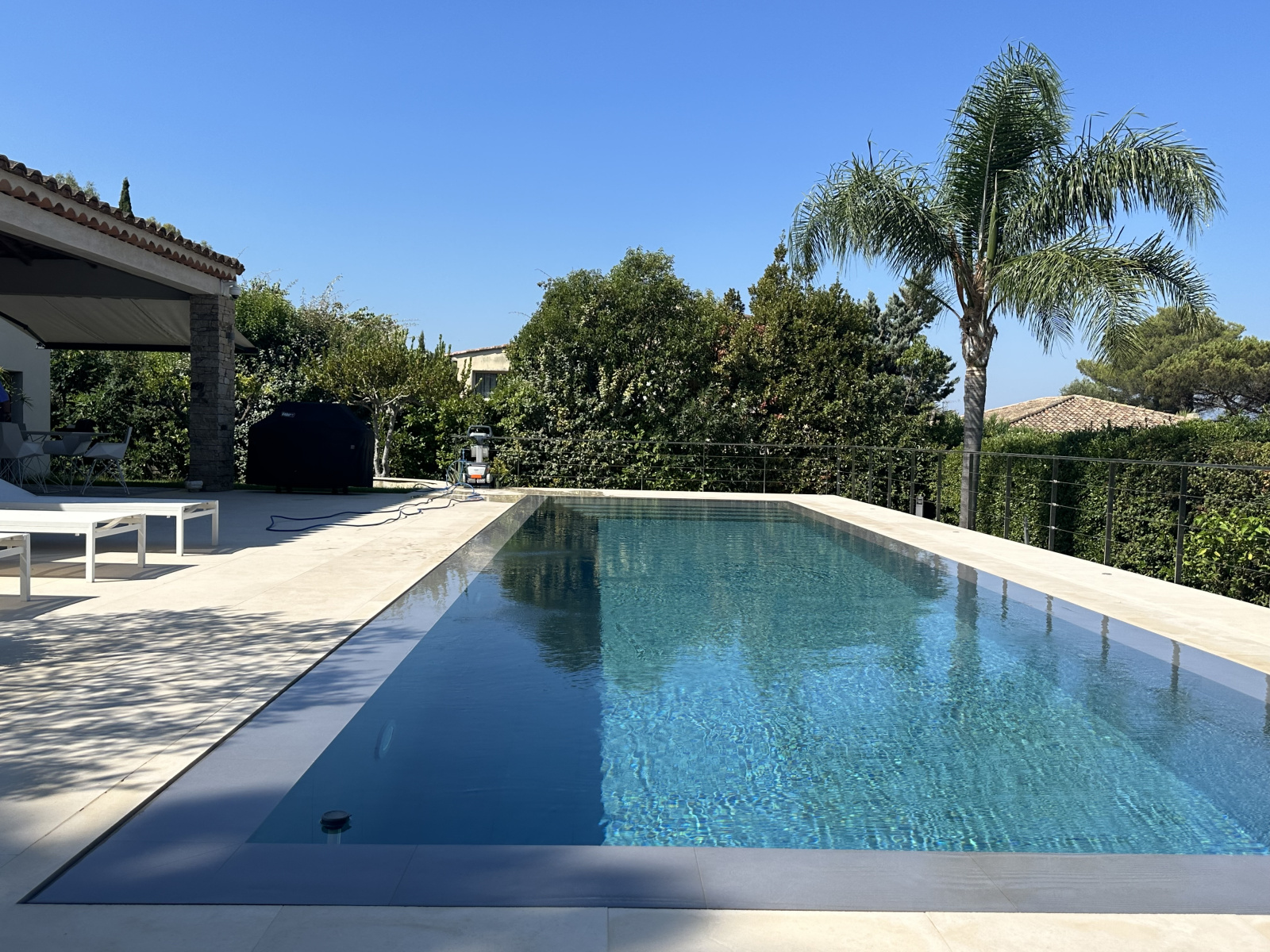 Grande terrasse couverte, Infinity pool avec terrasses en pierre